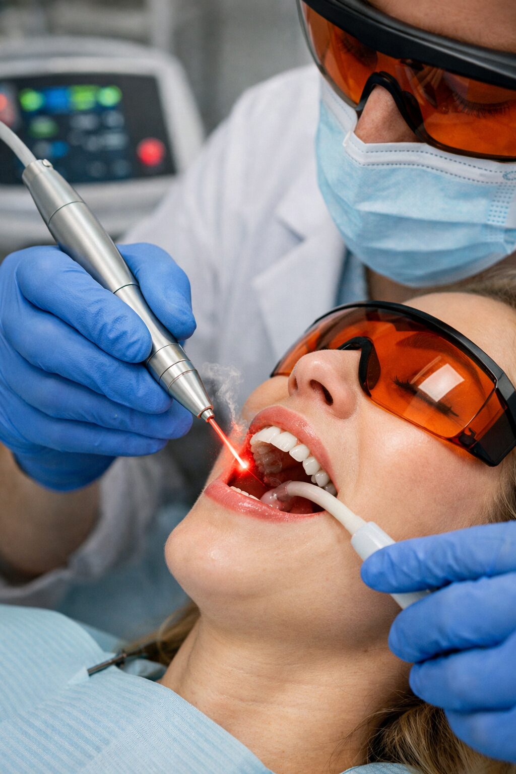 •  Cirugía de Tejidos Blandos sin Suturas: Realizamos procedimientos de encías con una precisión milimétrica. Al ser un tratamiento láser, la cicatrización es inmediata, el sangrado es casi nulo, y en muchos casos, no se requiere anestesia.